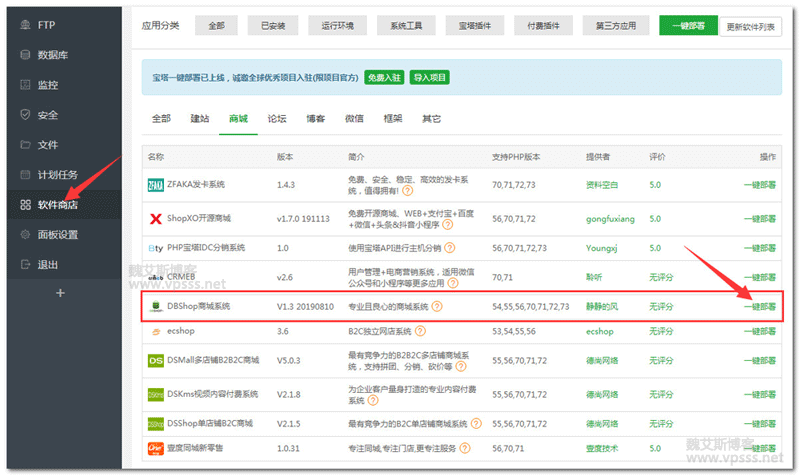 DBshop商城是国内开源的电子商务系统,适用于国内、国外、实物、虚拟商品等多种销售环境。且可使用宝塔面板一键部署,快速搭建。设置简单,更新方便。新版本包括手机模板,微信小程序和分销插件,极大的方便了电商拓展更多销售渠道。为了帮助大家更快用上 DBshop商城程序,老魏会在本文分享使用宝塔面板一键部署的过程。