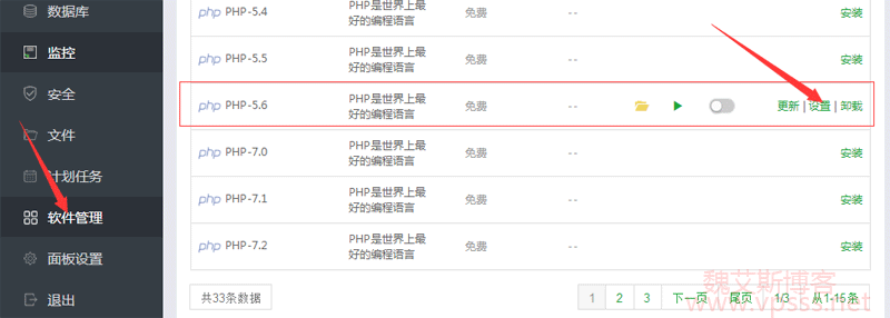 进入宝塔面板后台的【软件商店】,在下面找到你安装的 php 版本,点击后面的设置。
