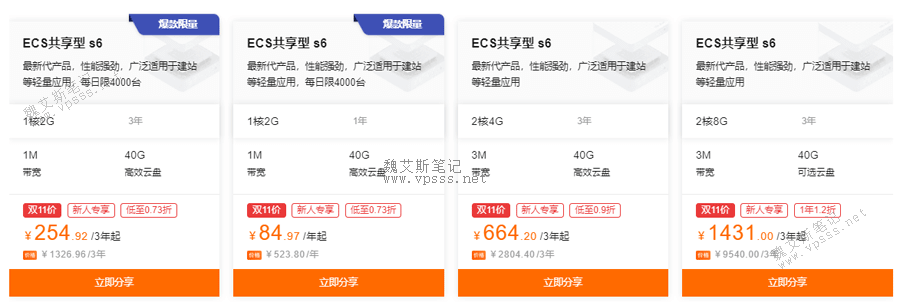 经过老魏的比对发现在阿里云双11拼团会场中都是共享型s6的服务器,和老用户续费对比如下: