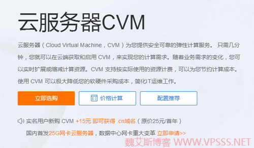 腾讯云是来自腾讯的云计算产品,现有云服务器 CVM、云数据库、云存储、负载均衡、CDN 等产品,使用最多的还是云服务器 CVM,主要用于网站建设和跑软件等。相对虚拟主机来说云服务器功能强大,能自行安装软件和环境。本文把购买腾讯云服务器 CVM 的过程整理出来,因为最开始老魏自己买腾讯云服务器的时候就眼花缭乱不知道如何选择、配置,后面也听很多网友抱怨过类似问题,那么大家看了下面的教程应该会比较清楚如何操作了。