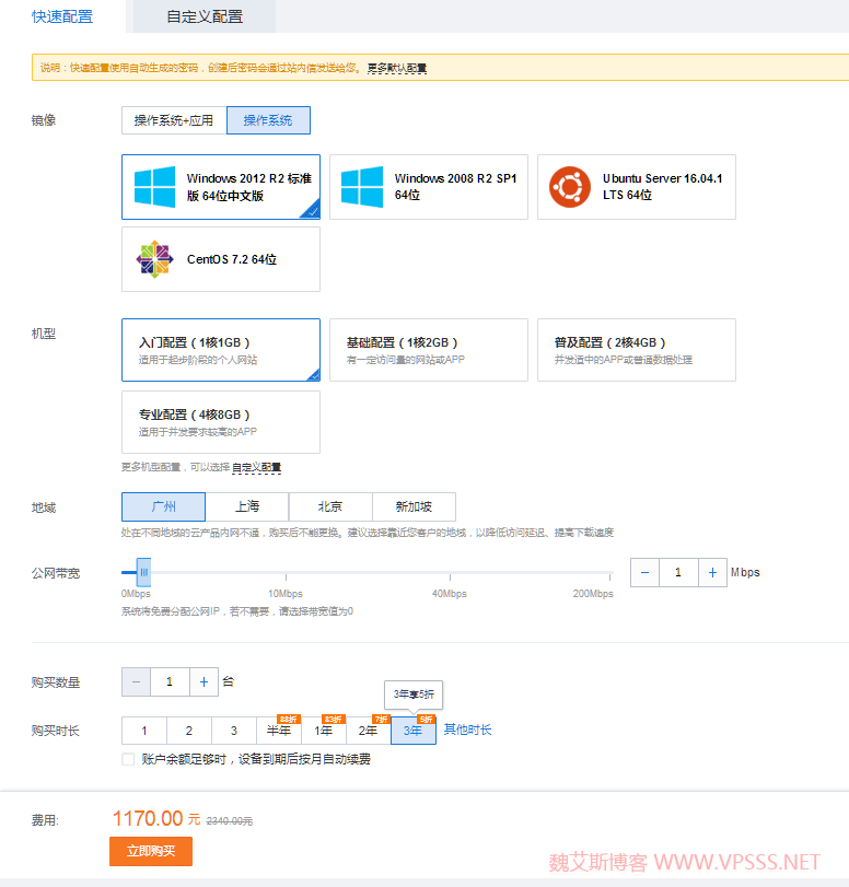 机型配置看你网站的流量多少,一般选择入门配置即可,后期流量上来了还可以升级配置。