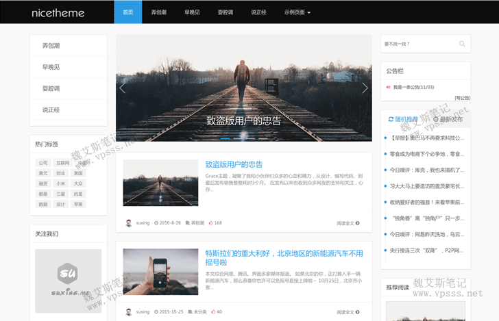 Vfilmtime主题是nicetheme的第一款WordPress博客主题。采用三栏结构,响应式布局,不同设备不同展示效果,能够在任何浏览器下进行友好的访问。