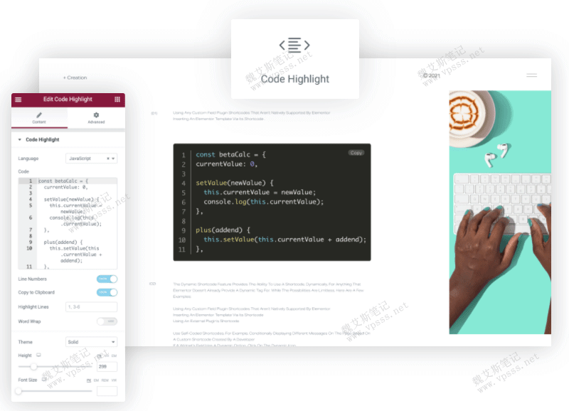 基于许多设计师和开发人员的要求,Elementor Pro开发了新的Code Highlight小部件。