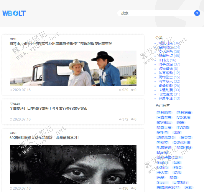 下图是首页截图,想看文章页、列表页请点击直达主题页面