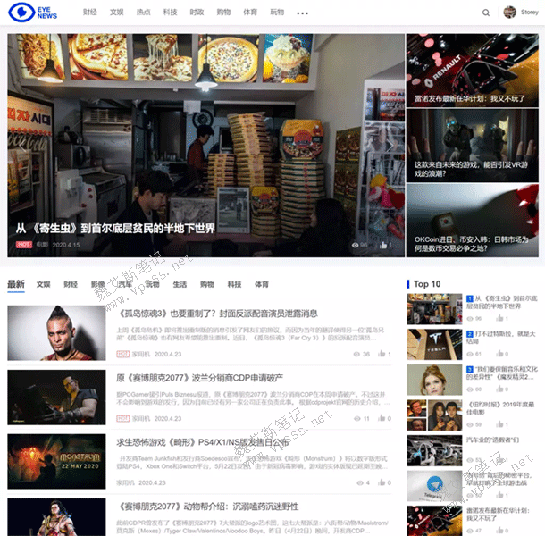 两种模式可选:Eyes主题可以搭建一个专业的博客,也可以是内容丰富的新闻资讯门户。