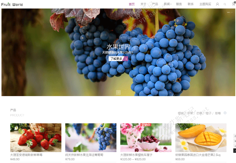 Fruit主题是一款WordPress企业产品展示商城主题,由萨龙网络设计开发。适用于企业产品展示及在线销售。主题设计风格简约、精致,提供了全屏页面宽度,浏览体验很棒。