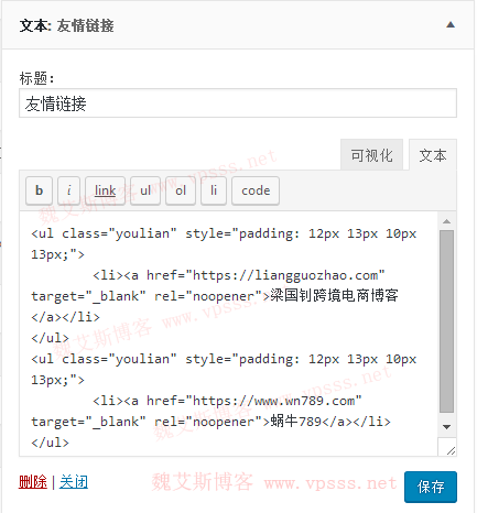 <li><a href=”https://www.vpsss.net” target=”_blank”>魏艾斯博客</a></li>
