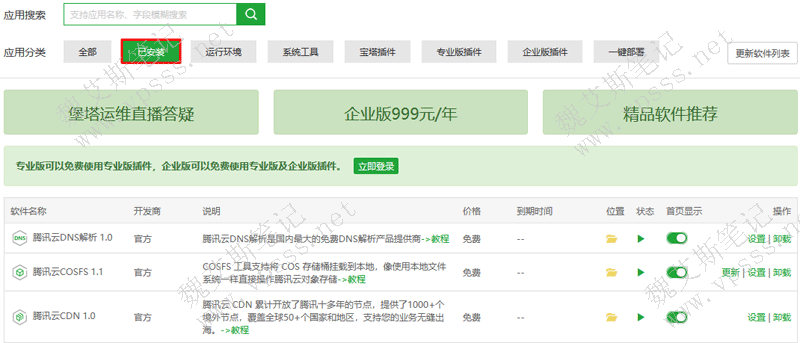 如果你使用了宝塔 Linux 面板的普通版本,需要手动安装腾讯云 COSFS插件。