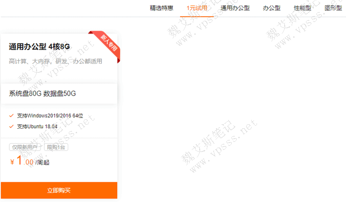 1元试用体验是为阿里云新用户提供试用机会,符合条件用户可1元试用活动产品1周,每人限1台,仅享受1次机会,使用公网带宽需另外购买。