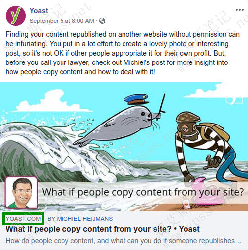 如下图所示是发布在 Facebook上的 OpenGraph 发布者标签。
