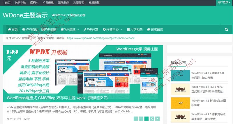 WDone主题是一款功能强大的 WordPress 响应式多样式主题,可切换为博客和 CMS两种布局,主题设置面板可以不修改主题文件轻松配置多种布局,博客提供4种样式,CMS无限自由布局。