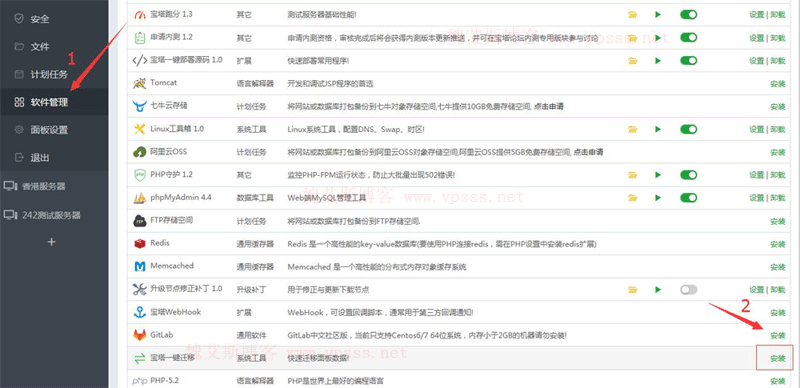 1、A、B 机器都要登录宝塔面板,在“软件管理”栏目里面找到“宝塔一键迁移”,并安装