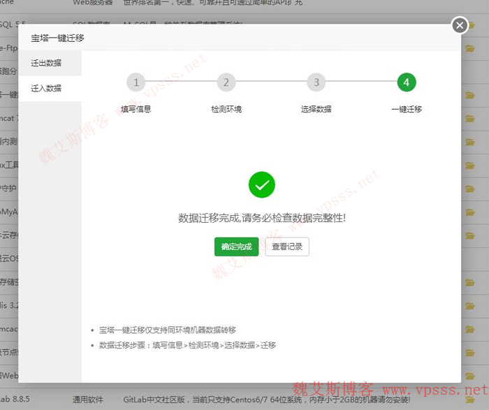 到此一键迁移就成功了。需要测试前台后台是否打开正常。正如宝塔面板的凡人说的那样,一键迁移功能是属于低频但非常重要的功能,当你需要这个功能的时候,一定是出于不得不搬家的状态;而且一键迁移涉及到的方方面面太多了,保不准哪个用户改动了环境的某一项,就会导致失败。所以宝塔面板官方对于这个功能的测试还会持续几个月,为了确保万无一失,等正式版出来后,大家才能安全的用到这个方便的网站搬家功能。