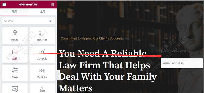 以 Elementor编辑器为例,老魏在 home页面使用 简码元素添加了 mailchimp短代码。