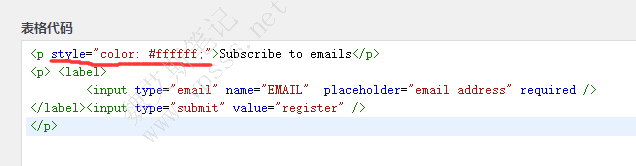 那一行 Subscribe to emails 的文字颜色,需要添加下图中的一段颜色代码即可完美符合主题样式。