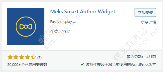 Meks Smart Autor Widget是一款 WordPress侧边栏显示作者信息框插件,可以在 WordPress侧边栏添加作者信息框,有很多主题自带此功能,而对于不包含此功能的主题,就只能使用插件了。
