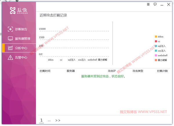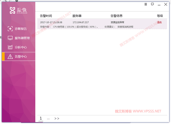 告警中心可以看到悬镜对服务器的警告时间、IP、信息,提醒站长及时调整错误,保持服务器的最佳状态。