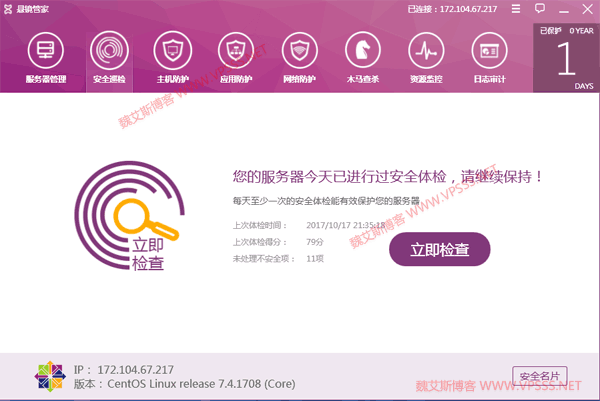 点击远程管理输入 root 账号密码后就进入了服务器管理界面。因为和安全狗、云锁的管理方式差不多,这里就不做过多介绍了,大家都能看得懂管理界面的意思和操作。