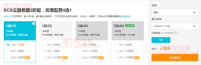 价格从 330 元/年(800 元/3 年)起步,2 核 4G(SSD 硬盘,读取速度成倍提升)企业专享配置 1980 元/3 年,实在是太划算了。