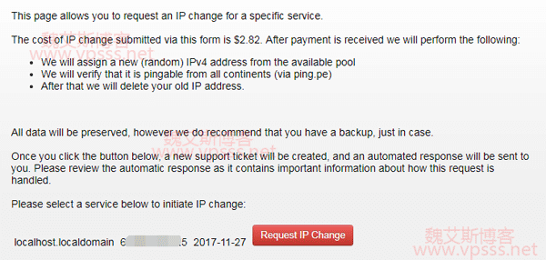 过年之前有一阵子搬瓦工的 IP 被国内屏蔽了不少,而且根据搬瓦工的政策是不予免费更换 IP,付费更换一个好用的 ip 需要 8 美元/次。这个费用根据最近汇率计算折合 RMB 50 元左右,如此高的价格导致国内网友怨声载道。最近老魏发现搬瓦工调整了付费更换 IP 的价格,从 8 美元/次调整为 2.82 美元/次,大概是 RMB 18 元,调整后性价比更高,更换 IP 不会对 VPS 原有数据产生影响,所以相对来说选择付费更换更方便。