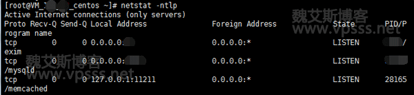 这样就看到这个服务器的 Memcached 端口是属于 Local 127.0.0.1 的,下图是安全的情况。如果 11211 的前面是 0.0.0.0 的情况就是任意地址都可以登陆了,属于不安全了,接下来就要做安全防护工作。