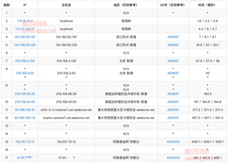 浙江联通的 ping 结果在意料之中,高延迟达到 450ms 左右,所以不建议国内直连。