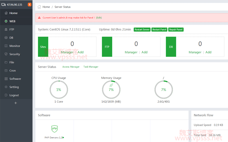 aaPanel, a simple but powerful control panel, can manage the web server through web-based GUI(Graphical User Interface).