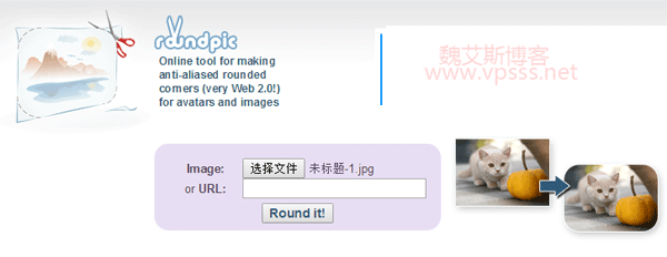 RoundPic 的使用方法和上面的 aTool 差不多,也是把图片上传上去(或者粘贴网上图片地址),点击“选择文件”,再点击“round it!”
