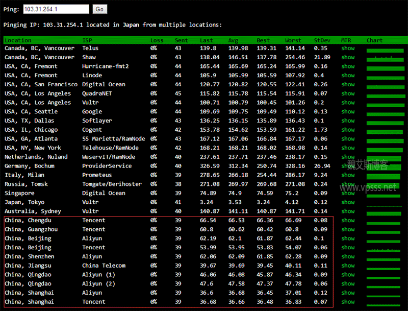 以下是魏艾斯博客测试上面日本 IP 的结果,测试时间是晚上 8 点多上网高峰期。从结果看国内 ping 速度还是蛮不错的,甚至和 ping 香港机房的结果一样了,可见 HostKvm 这款日本机房的国内访问速度还是很好的,有需要的朋友可以试试。