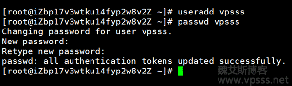 两条命令的含义:添加 vpsss 这个账号,为新账号添加密码。