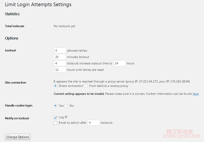 不过为了安全起见,我们可以把 WordPress 后台登陆密码设置的复杂一些,比如大小写字母+数字+字符,或者参考修改 wordpress 后台登陆地址和登陆用户名的做法,后者更难以攻破。不过对于新手来说可能短期内不熟悉 WordPress 不知道如何修改后台登陆地址,那么也可以用这个插件先顶一阵子,等学会了修改就直接换成修改后台登陆地址的保护方式。
