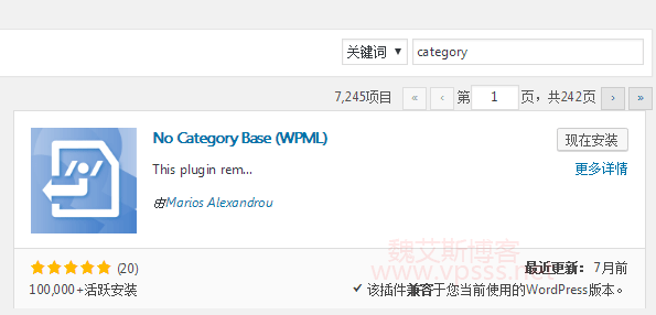 比较常用的 category 插件很多,最出名的 WP No Category Base 官方已经找不到了,还有一款现在用的蛮多的 no category base wpml 插件可以使用来去除 category。