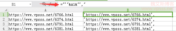 这时候打开 excel 或者 wps 表格,A 列放入上面的网址,一行一个;B 列放入命令:
