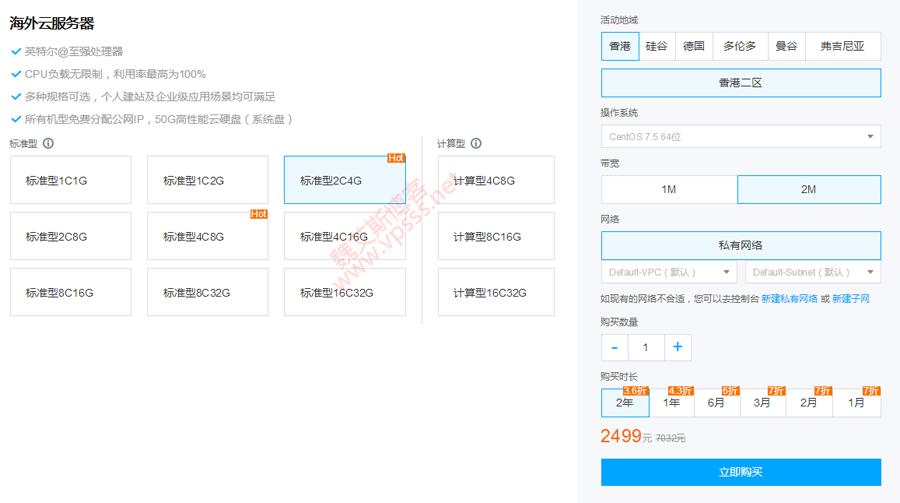 下面推荐三款大家常用的配置,推荐选择香港 2 核 4G 内存 2M 带宽的方案,买 2 年最省钱。用在中小型 Web 应用、中小型数据库等生产环境中毫无压力。